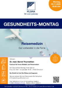 Alle Interessierten sind ganz herzlich zum Gesundheits-Montag am 03.11.2025 um 18:30 Uhr im Flora Info Treff, Schulstr. 46-50, 25335 Elmshorn eingeladen.